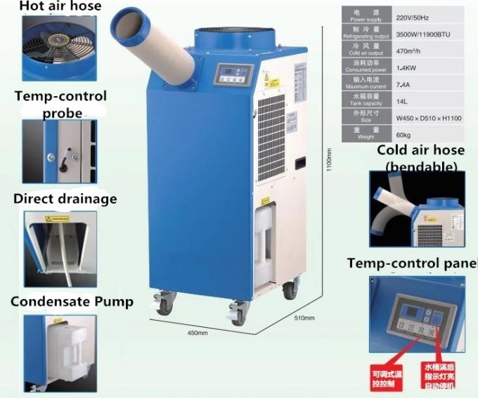 Durable 3500W Portable Spot Coolers / Spot Cooling Systems For Hospital Cooling